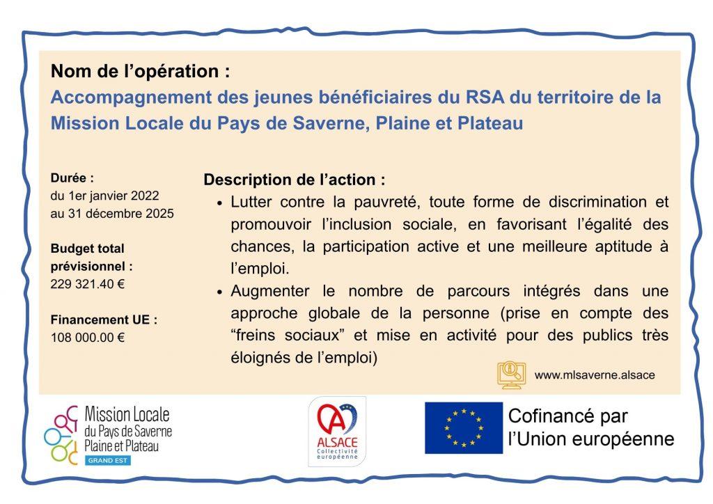 Nom de l’opération : accompagnement des jeunes bénéficiaires du RSA du territoire de la Mission Locale du Pays de Saverne, Plaine et Plateau